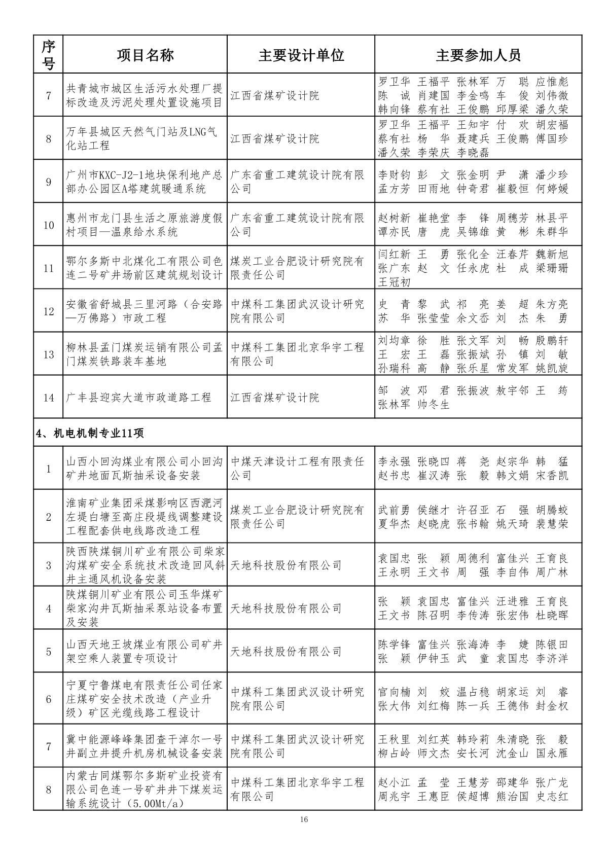 关于公布2019年度煤炭行业(部级)优秀工程勘察设计奖评选结果的通知
