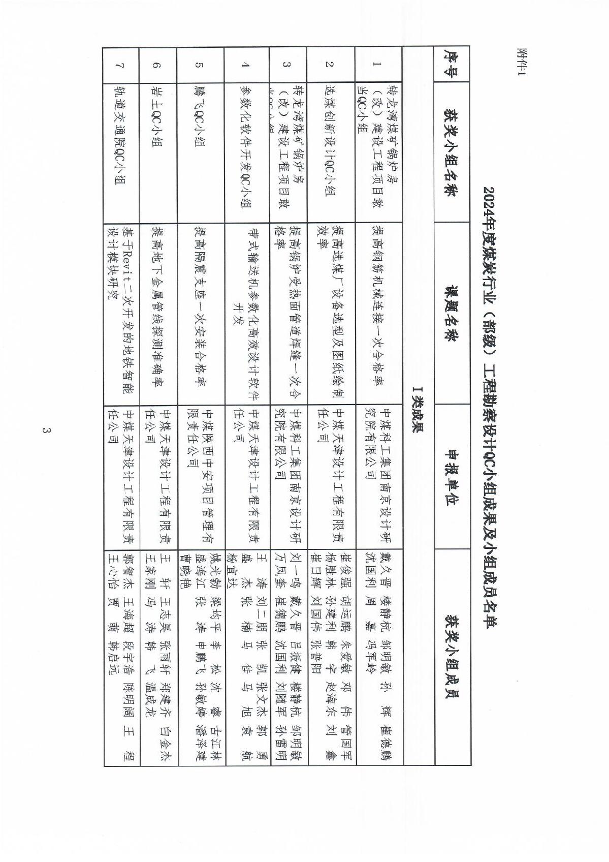 公布2024年度煤炭行业工程勘察设计QC小组通知